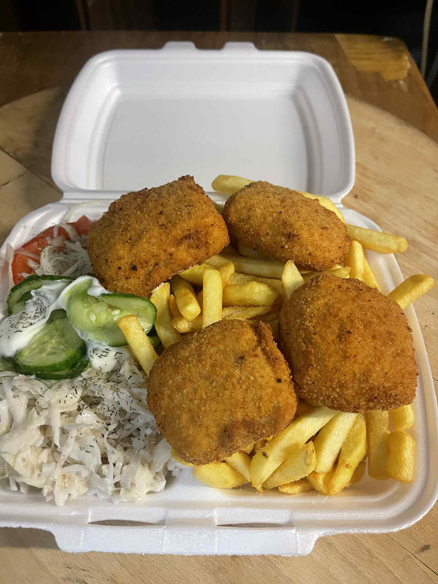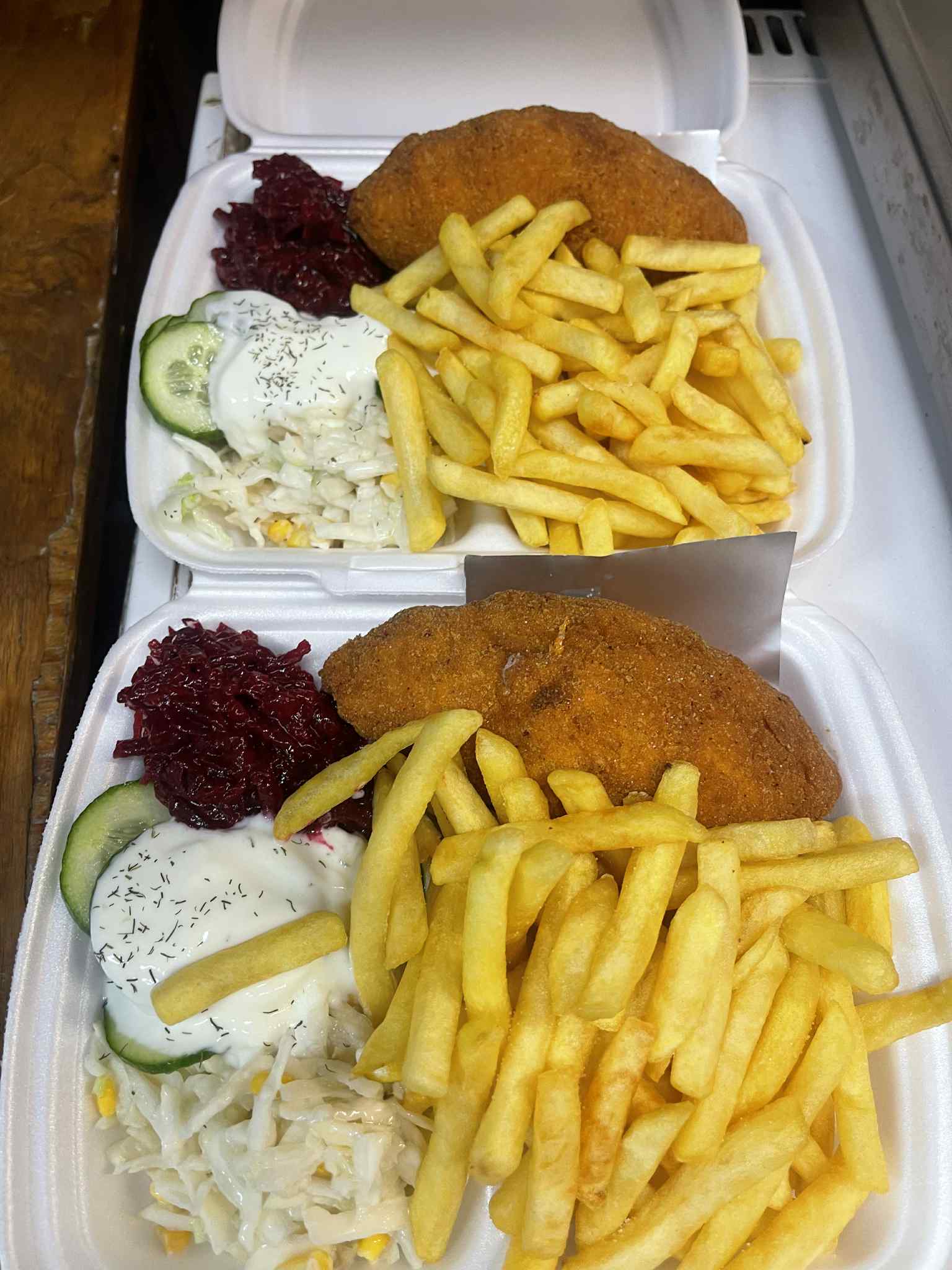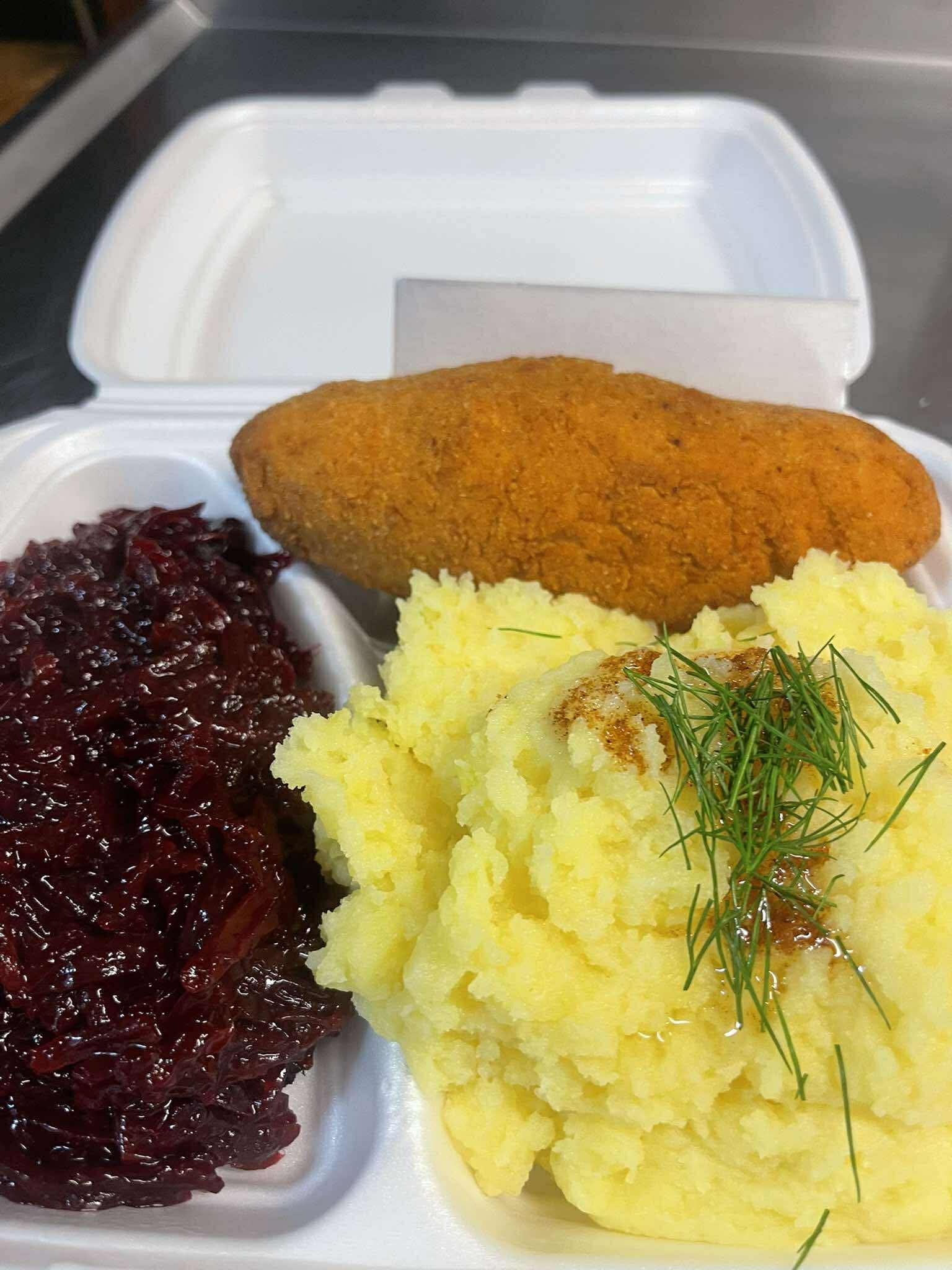 Zestaw obiadowy – ser zapiekany w chrupiącej panierce